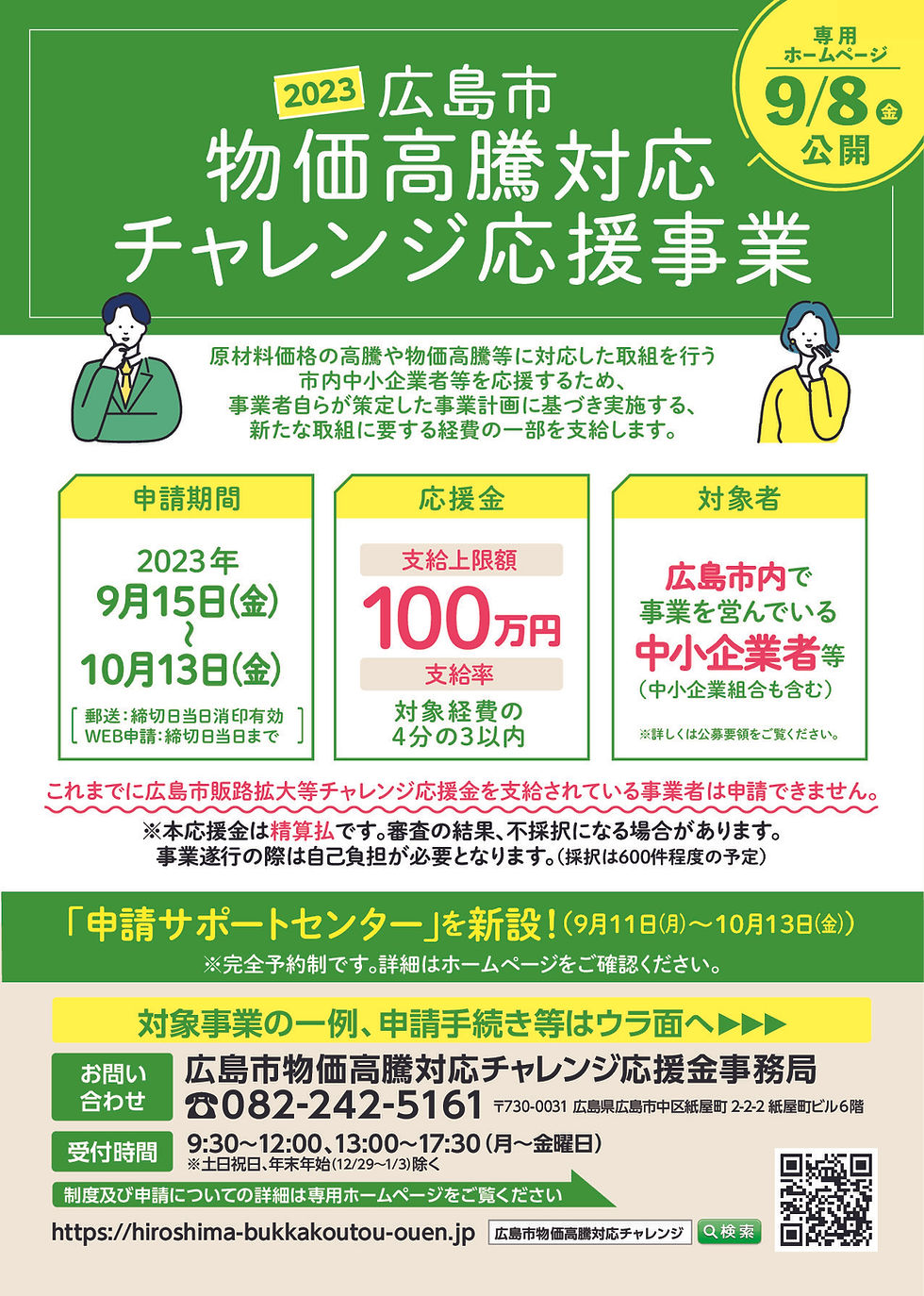 広島市からのお知らせをご案内します。 2023広島市物価高騰対応チャレンジ応援事業公募開始のお知らせ